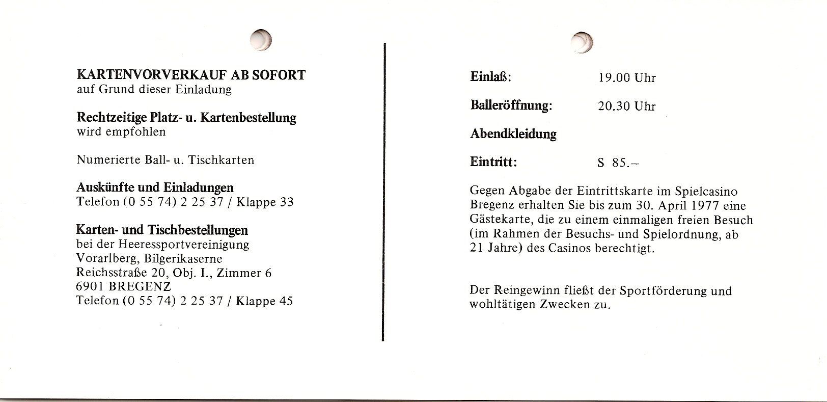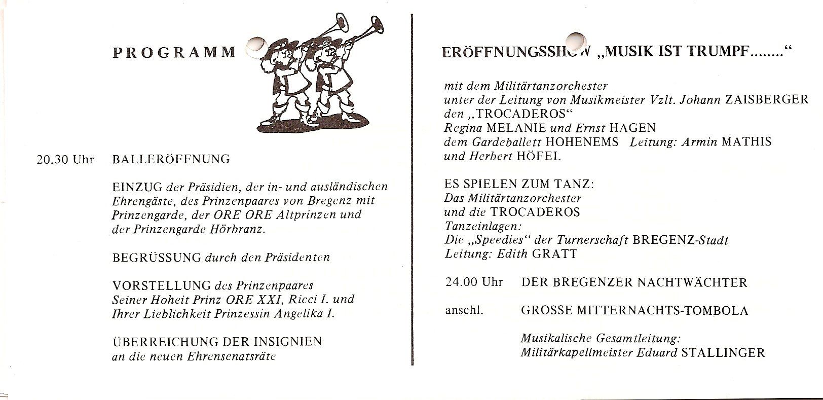 Unten: Die Einladungskarte zum Gildenball im Leiblachtalsaal im damaligen Hotel Krone in Hörbranz.