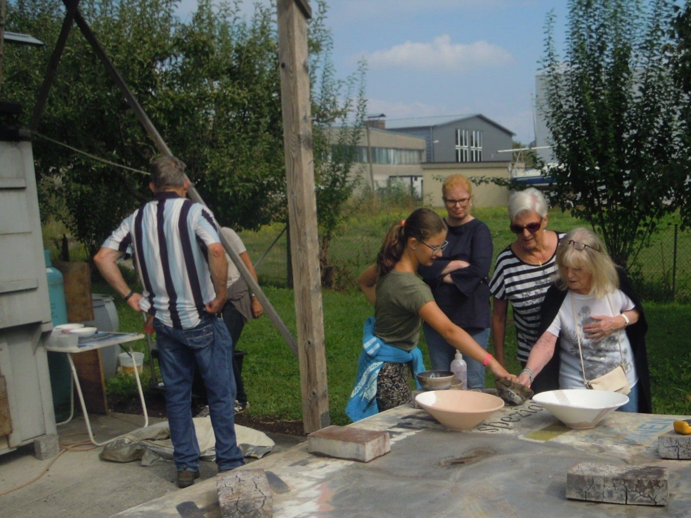 Beim prominenten Keramik-Künstler Albert Holzer in Fußach durften kürzlich wieder BFG Nachwuchs-Keramiker zu Werke gehen. Tombola-Gewinner vom Bregenzer Gildenball und Mitglieder der Bregenzer Faschingsgesellschaft (BFG) erhielten - eingewiesen vom Meister persönlich- Gelegenheit, vorbereitete Rohlinge nach eigenem Können und Empfinden zu gestalten. Spannend war, welch kunstvollen Schalen nach dem RAKU-Brand tatsächlich aus dem Ofen kamen, sofern sie nicht bei tausend Grad schon im Brennofen zerbarsten. Nach dem Auskühlen der gelungenen Werke wurden die BFG Keramik-Lehrlinge für einen Tag mit standesgemäßer Verpflegung gestärkt. Renate Mitterhuber bedankte sich bei Albert Holzer, Enkelin Julia als "Assistentin" und Hausfrau Ingrid für den außergewöhnlichen Event.