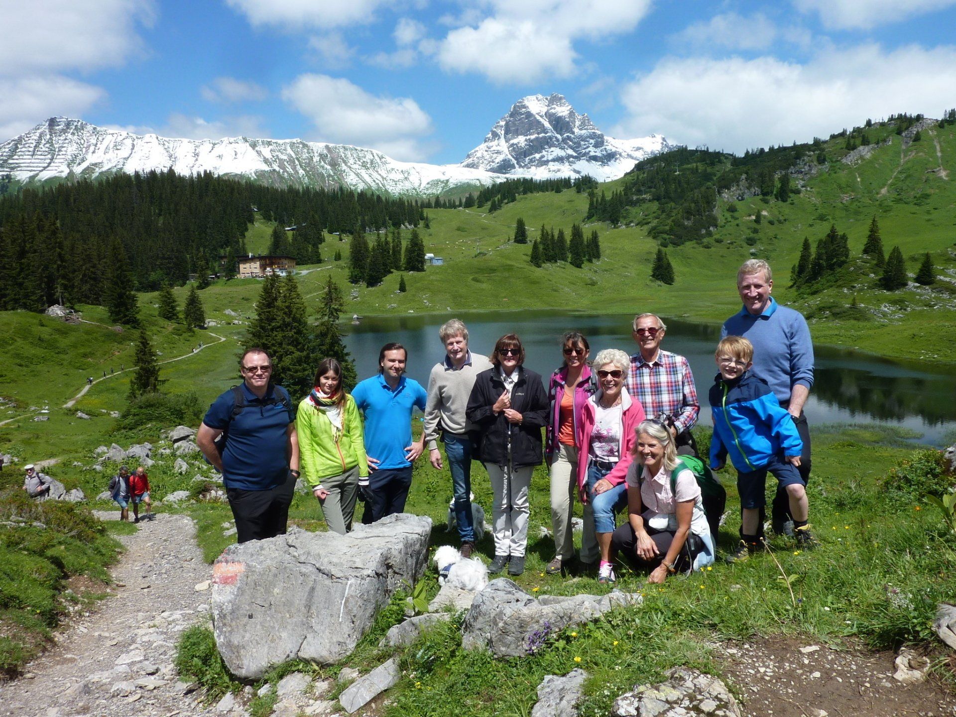 Unser Ländle isch oanfach schö‘! ....das durften Tombola-Gewinner des Gildenballes der Bregenzer Faschingsgesellschaft (BFG) heuer aufs Neue bei der alljährlichen Alp-Wanderung mit Landesrat Erich Schwärzler in der prächtigen Hochtannberg-Region erleben. Es war wieder eine wunderschöne Sommerwanderung von Hochkrumbach über den Kalbelesee vorbei am Körbersee zur Alpe Batzen. Dort waren als Belohnung für die Wander-Mühen bereits Köstlichkeiten aus dem Ländle aufgetischt. Nach dem „Jausnen“ rundete eine Besichtigung der Alpkäserei den geselligen Teil des Tages ab. Gestärkt ging es dann abwärts zum Ende der Wanderung in Schröcken. BFG-Hofkämmerer Markus Bischof reimte die Dankesworte zusammen: “Im Namen aller Wanderer und mir sagen wir, lieber Erich, Danke Dir“.