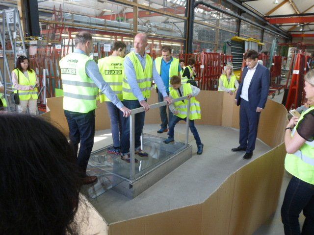 Glas ist erstarrte Flüssigkeit und kann durch noch so starke Erhitzung nicht verdampfen. Als moderner Werkstoff ermöglicht Glas viele architektonische Innovationen und ungewöhnliche praktische Anwendungen für Fenster, Fassaden oder Innenausbau. Darüber hat kürzlich Ing. Bernhard Feigl als Geschäftsführer von Glas Marte in der Bregenzer Firmenzentrale Gewinner von der Gildenball-Tombola und Begleiter von der Bregenzer Faschingsgesellschaft (BFG) informiert. Vor Beginn der Werkführung erhielten die Besucher Gelegenheit, sich in der Marte-Lehrwerkstätte mit dem Werkstoff Glas quasi künstlerisch vertraut zu machen und eine Glasschale nach eigener Kreation zu gestalten. Beim Rundgang durch die Werkhallen informierte der Geschäftsführer über Anwendungsmöglichkeiten von modernem (Sicherheits)Glas und diverse Eigenentwicklungen von Glas Marte. Prominente Referenz-Projekte vom Kunsthaus Bregenz bis zu Industrie- und Privatbauten in aller Welt gelten als Erfolgsnachweis. Beim abschließenden Imbiss bedankte sich Geheimrätin Jacqueline Hämmerle im Namen der BFG bei Bernhard und Martina Feigl für die Einladung und entlockte dem Glas Marte-Geschäftsführer auch die Zusage für eine neuerliche Tombola-Spende beim Gildenball 2017.