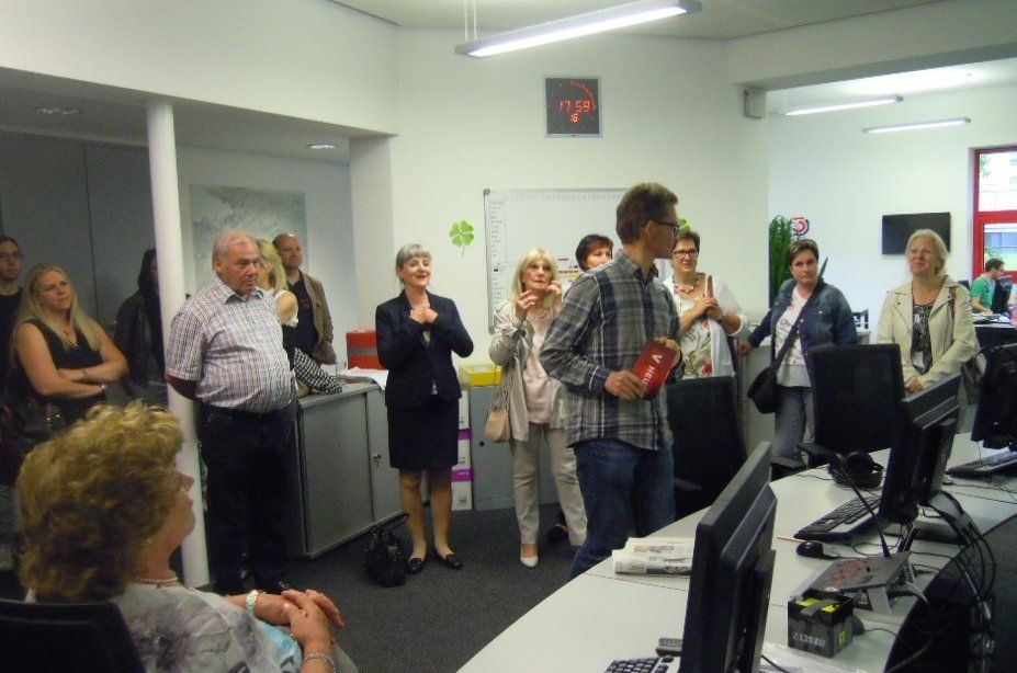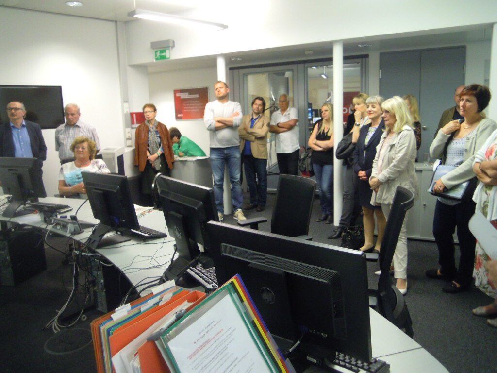 Gewinner der Gildenball-Tombola und Mitglieder Bregenzer Faschingsgesellschaft (BFG) hatten Anfang Juni Gelegenheit, hinter die Kulissen des ORF Vorarlberg zu schauen und wissen nun, woher das allabendliche „Grüß Gott in Vorarlberg“ kommt. Musik-Redakteur Gilbert Hämmerle führte durch das ORF Gebäude und informierte über die Produktionsbedingungen für Hörfunk, Fernsehen und online. Zu Beginn wurde im Publikumsstudio ein Informationsfilm des ORF Vorarlberg vorgeführt. Landesdirektor Markus Klement grüßte dabei virtuell von der Großleinwand. Anschließend konnten die Besucher im Studio und in der elektronischen Kommando- und Steuerungszentrale die Vorbereitungen für die abendliche Sendung "Vorarlberg heute" hautnah verfolgen. Für eine Minute TV-Beitrag sind Schnitt und redaktionelle Bearbeitung von einer Stunde Film-Rohmaterial erforderlich, war zu hören. Zum Ausklang in der ORF Kantine gab es eine feine Stärkung und Gelegenheit zum Fachsimpeln. BFG Innenministerin Mariette Eisendle bedankte sich bei Hämmerle für die engagierte Hausführung und sprach die Hoffnung aus, dass Landesdirektor Markus Klement auch für die Gildenball-Tombola 2017 wieder einen ORF Event sponsert.