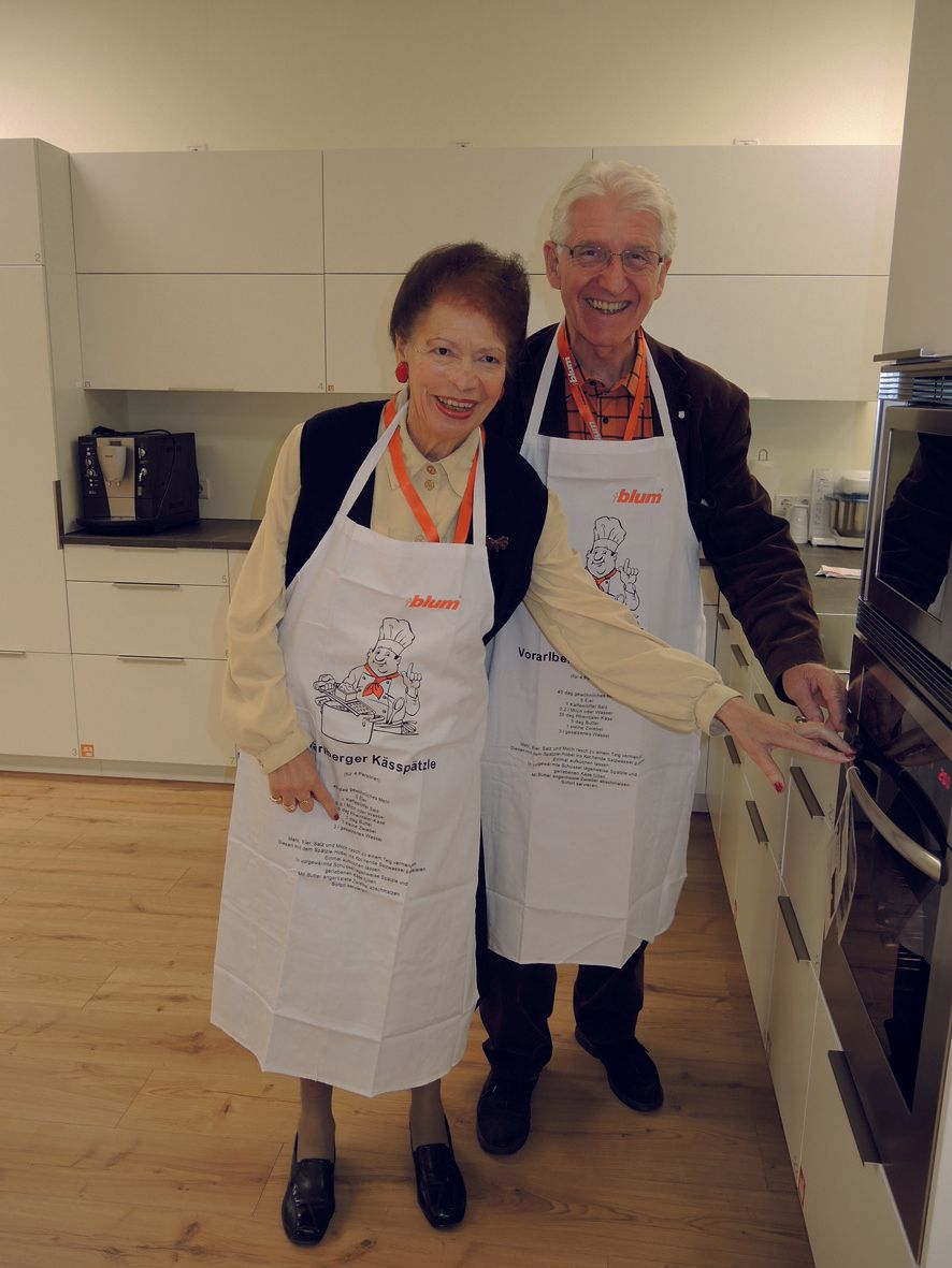 Information und Emotion gab es für Tombolagewinner bei der Einlösung der von der Beschlägefirma Blum gestifteten Event-Preise. Die zehn Teilnehmer wurden von PR Chefin Yvonne Greussing in der Firmenzentrale in Höchst kompetent informiert und betreut. Zunächst gab Frau Greussing einen filmischen Einblick in die Firmengeschichte – von der Schlosserei Julius Blum bis zum heutigen Familienkonzern mit Weltgeltung. Küchenplaner, Möbelbauer oder Architekten verwenden High Tech-Scharniere, innovative Beschläge oder intelligente Ladenauszüge von Blum, um moderne Küchen-, Bad- oder andere Möbel erfolgreich auf den Markt zu bringen. Gerade Küchen-Abläufe sind Blum ein Anliegen, in diesen Bereich wird viel Forschungsenergie gesteckt. Qualität beginnt in der Produktion, jedes Stück wird vor der Auslieferung mehrfach geprüft. Emotionaler Höhepunkt des Abends war die Blum Laborküche mit unterschiedlichen Küchen - von einfach bis Hochtechnologie. Hier durften die Teilnehmer beim Herstellen eines Schnitzel-Menüs die Vorzüge moderner Küchentechnologie testen und zum fröhlichen Abschluss die eigenen Kreationen gemeinsam genießen. BFG Elferrat Werner Kaplaner bedankte sich bei Frau Greussing und ihrem charmanten Damen-Team für den originellen BFG BLUM's Day mit Wiener Schnitzel. Vizepräsidentin Jacqueline Hämmerle überreichte passende Präsente für die Gastgeberin und ihre charmanten Mitarbeiterinnen.
