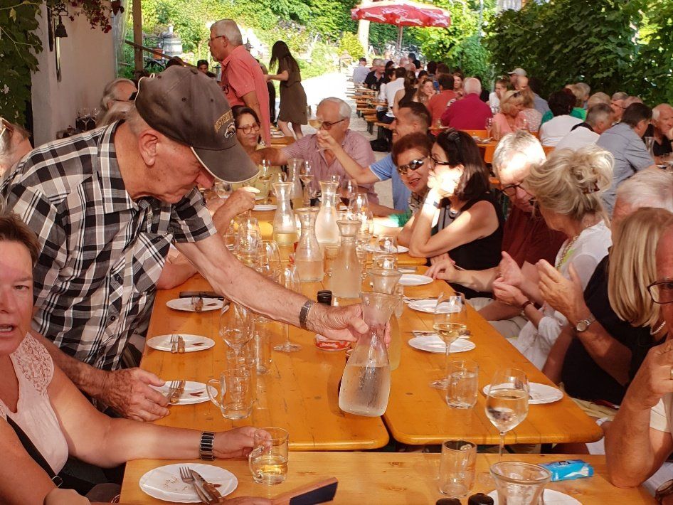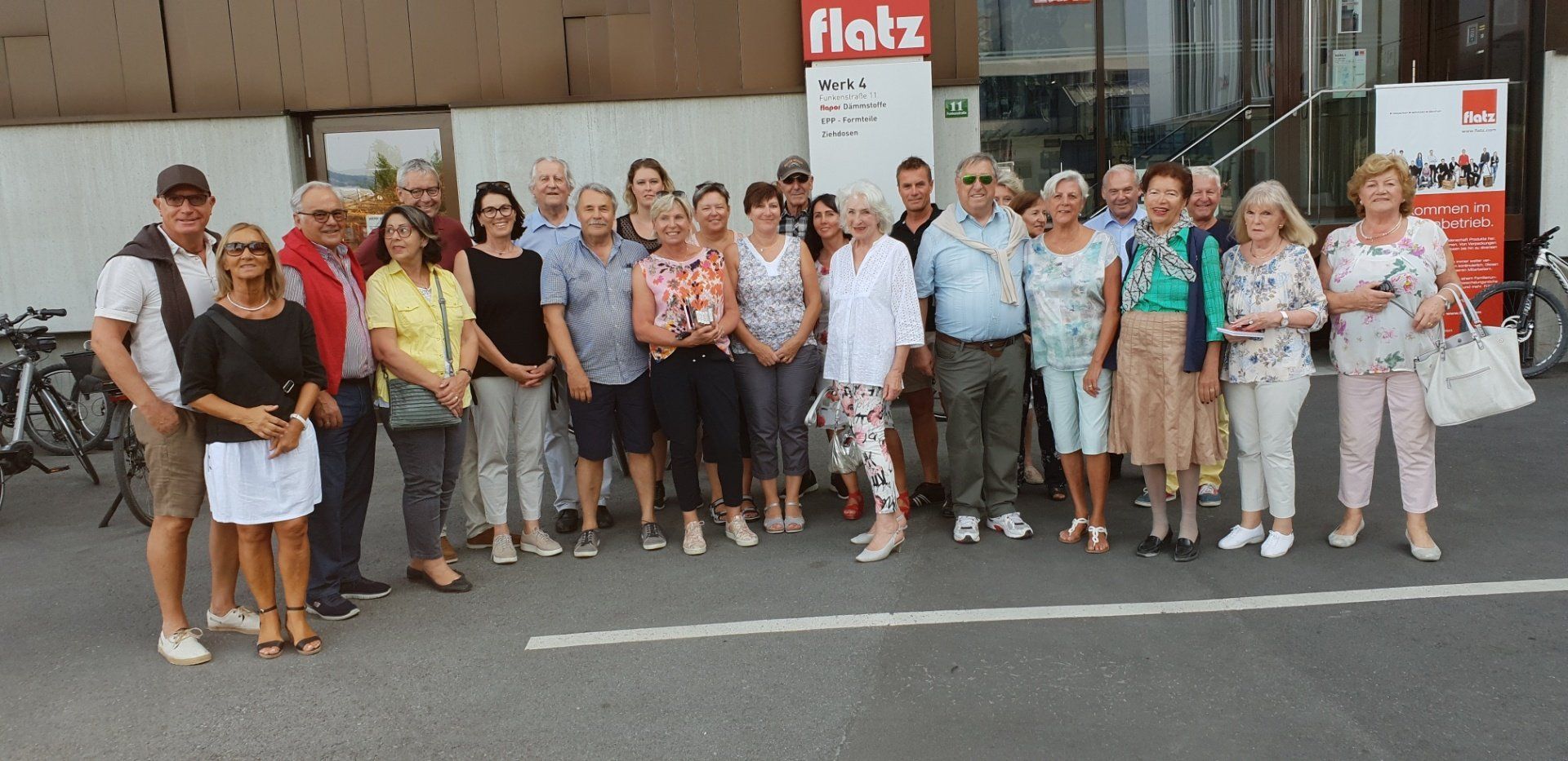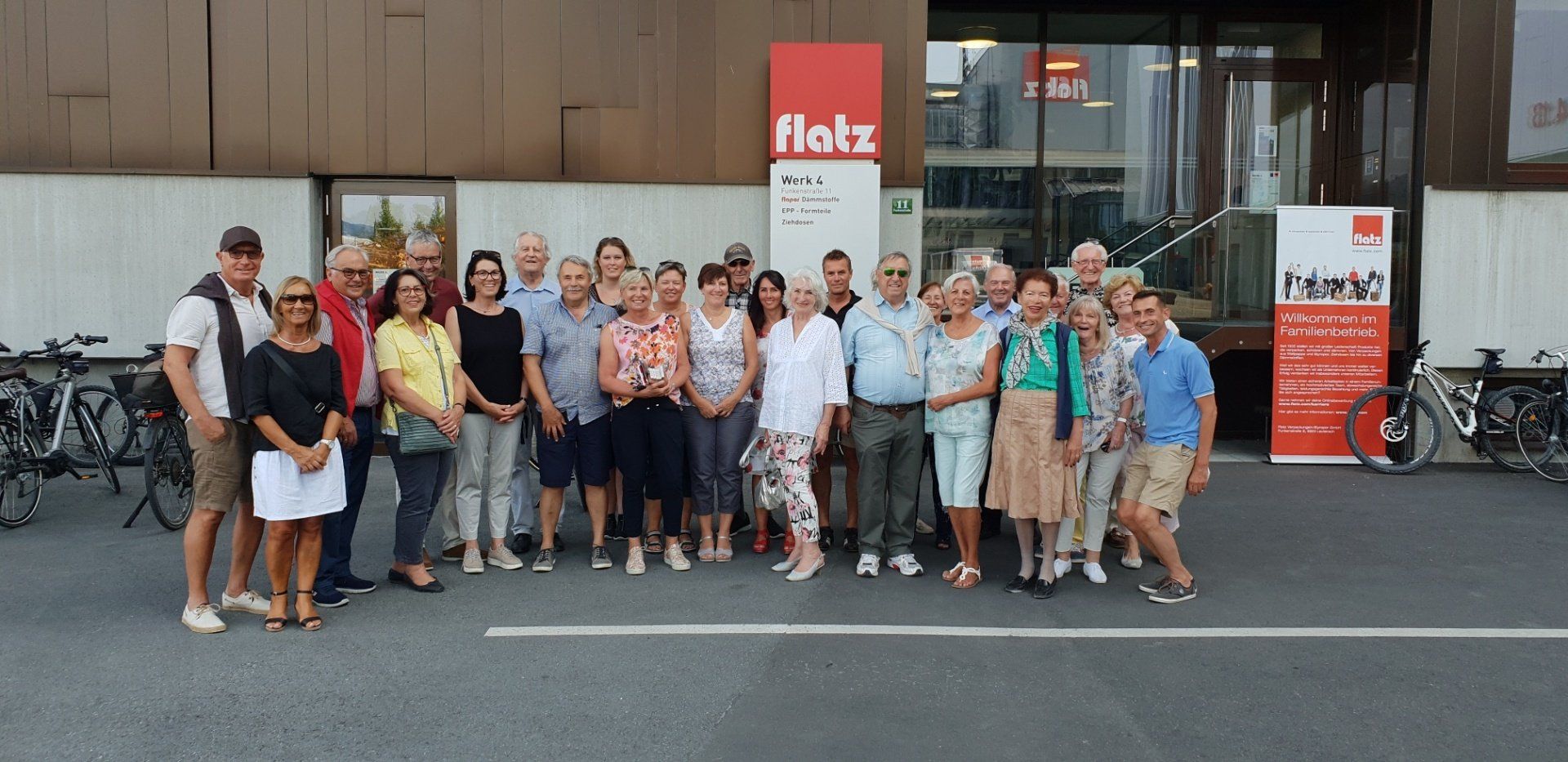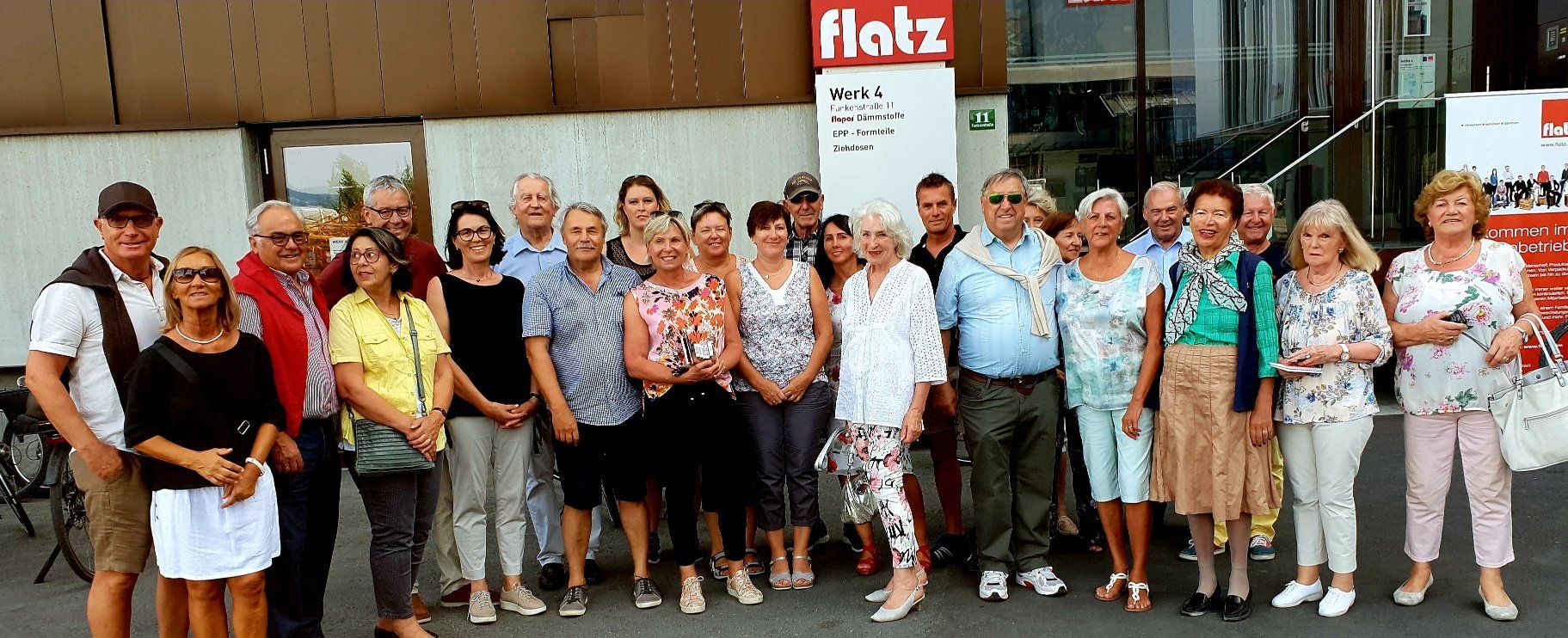 Seit zehn Jahren stellt Landesstatthalter Karlheinz Rüdisser für Tombola-Gewinner beim Gildenball der Bregenzer Faschingsgesellschaft (BFG) einen Erlebnispreis zur Verfügung. Bei der jüngsten Auflage des immer in seiner Heimatgemeinde Lauterach startenden Events radelte Rüdisser mit Gewinnern und BFG-Mitgliedern von Michis Café zur Fa. Flatz Verpackungen GmbH, einem Paradebetrieb des Landes, wie der Statthalter hervorhob. Seniorchef Hanspeter Flatz führte die Gruppe durch Werk 4 des 1935 gegründeten Unternehmens, das mit 325 Mitarbeitern (davon 30 Lehrlinge) von Wellpappe bis Styropor-Formteilen und -Dämmelementen, Faserguss aus Papier, technischen Teilen, aber auch Schachteln für Käse-Ecken jährlich 73 Mio. Euro erwirtschaftet. 60 Prozent gehen in den Export. Nach der ausführlichen Firmen-Präsentation entspannten sich alle Teilnehmer bei einer zünftigen Jause im Bregenzer Heurigen Möth. Im Namen der Teilnehmer bedankte sich BFG-Hofnarr Werner Kaplaner bei Familie Flatz und Birgit sowie Karlheinz Rüdisser für die angenehm „verpackte“ Einladung.