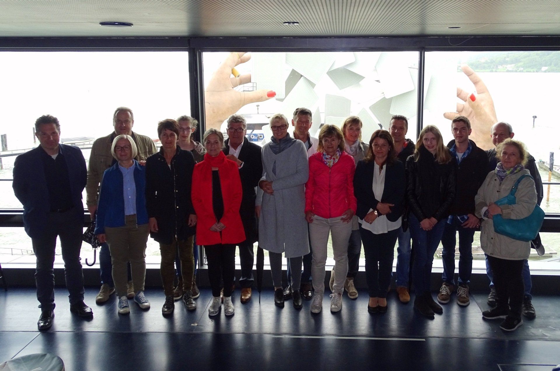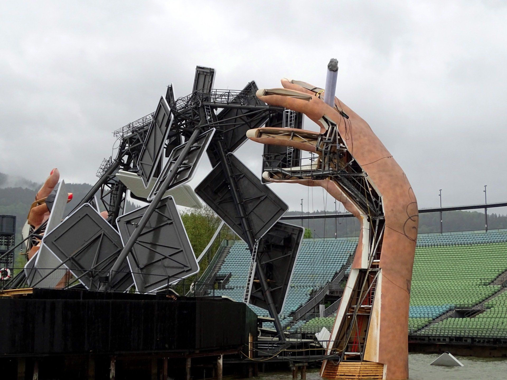 Aufschlussreiche Blicke hinter die Kulissen der neuen Festspielproduktion gab es kürzlich für Tombola-Gewinner vom Gildenball der Bregenzer Faschingsgesellschaft (BFG). Zwei Monate vor der Premiere von George Bizets Oper „Carmen“ führte Technischer Direktor Wolfgang Urstadt die Gruppe auf die neu gestaltete Seebühne. Das Wetter war zwar nicht südlich freundlich, mit Regenschirmen konnte man aber trocken nach Opern-Spanien gelangen. Direktor Urstadt informierte die Teilnehmer darüber, dass rund zweieinhalb Jahre vor der ersten Aufführung von der Künstlerin Es Devlin der Entwurf für das Bühnenbild vorliegen musste. Die Umsetzung hat mittlerweile Gestalt angenommen, an Details der überdimensionalen Frauenhände mit dem Kartenspiel wird bis zur Premiere noch gearbeitet. Im Namen der Gewinner bedankte sich BFG-Innenministerin Mariette Eisendle bei Direktor Urstadt für den Nachmittag auf der Festspiel-„Baustelle“.