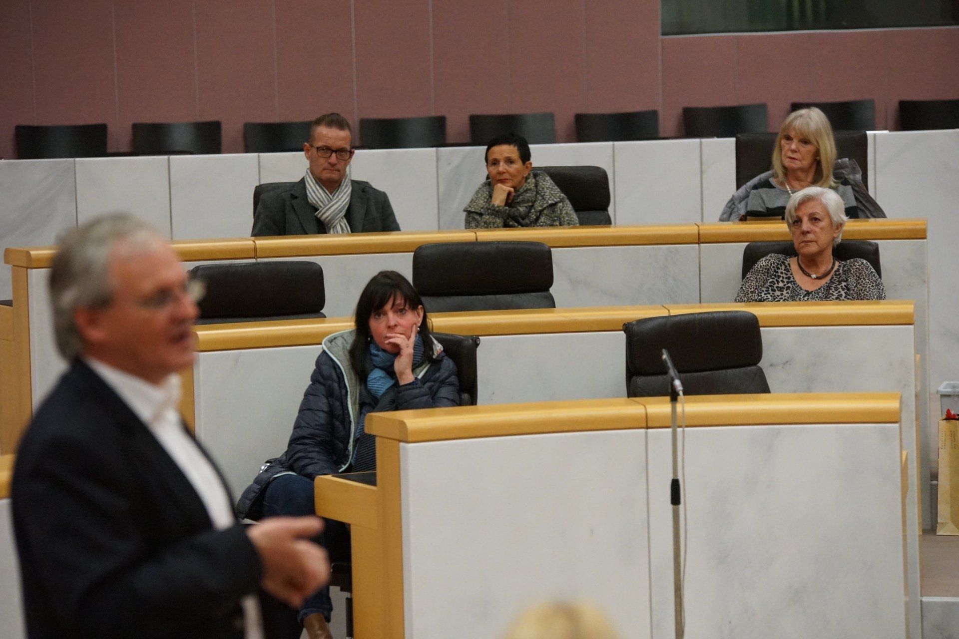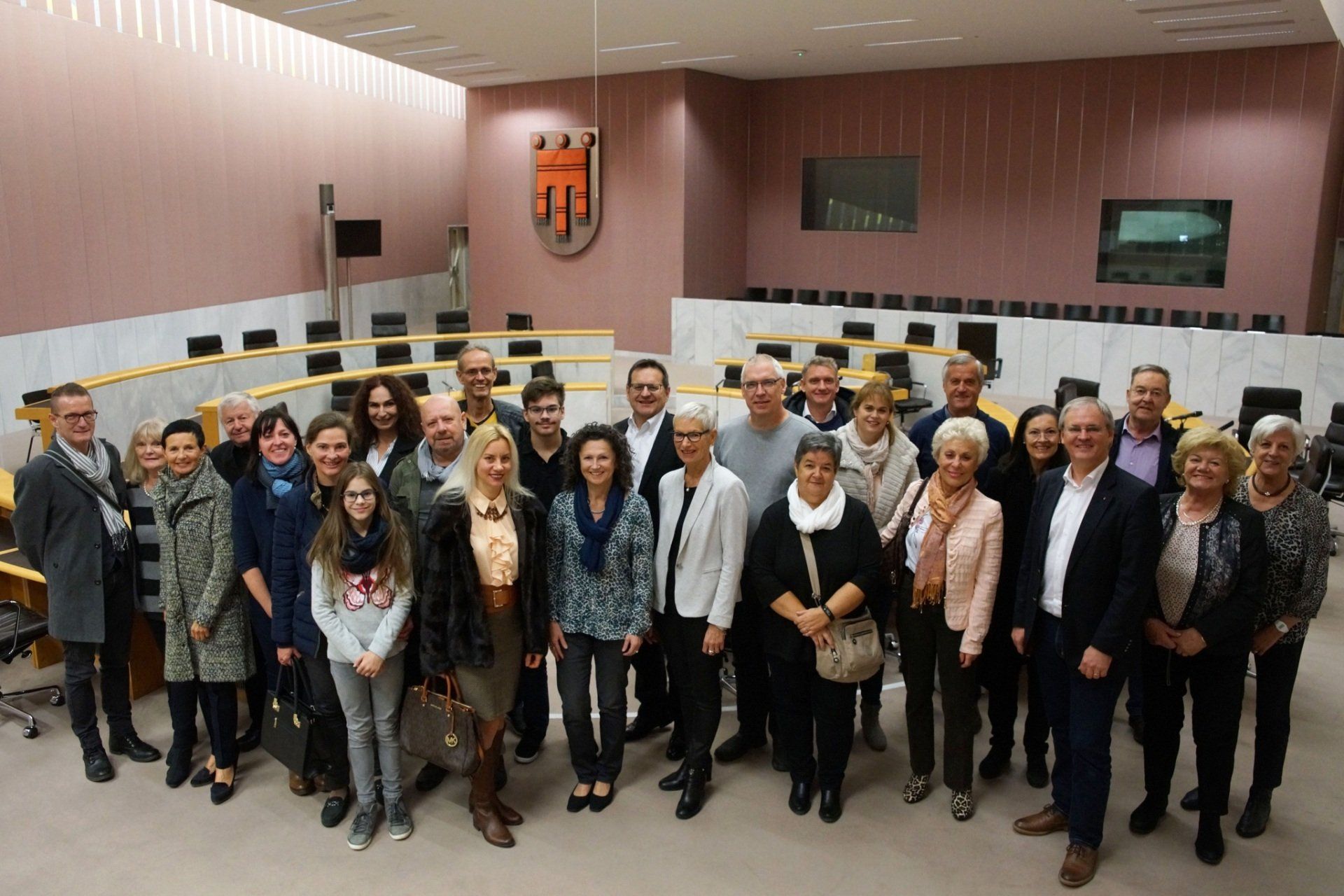 Wie kommt man ohne Wahl in den Landtag? Eine Möglichkeit dazu bietet der Besuch des Bregenzer Gildenballs. 21 Gewinner der Ball-Tombola und ein paar Mitglieder der Bregenzer Faschingsgesellschaft waren kürzlich als Gäste von Landtagspräsident Harald Sonderegger auf Besuch im Vorarlberger Landtag. Sabine Möckl führte die Gäste durch das Landhaus und vermittelte mit Wort und Film Einblicke in Funktion, Geschichte und Architektur von Landesparlament und Landesregierung. LTP Sonderegger erläuterte die Arbeit des Landtages als Gesetzgebungs- und Kontroll-Institution. Beim Buffet gab es noch Gelegenheit zu Fragen an und Gesprächen mit dem Landtagspräsidenten. Im Namen der BFG bedankten sich die Vorstandsmitglieder Renate Mitterhuber und Jacqueline Hämmerle bei Sonderegger und seinem Mitarbeiterstab für den informativen Nachmittag im Landhaus.