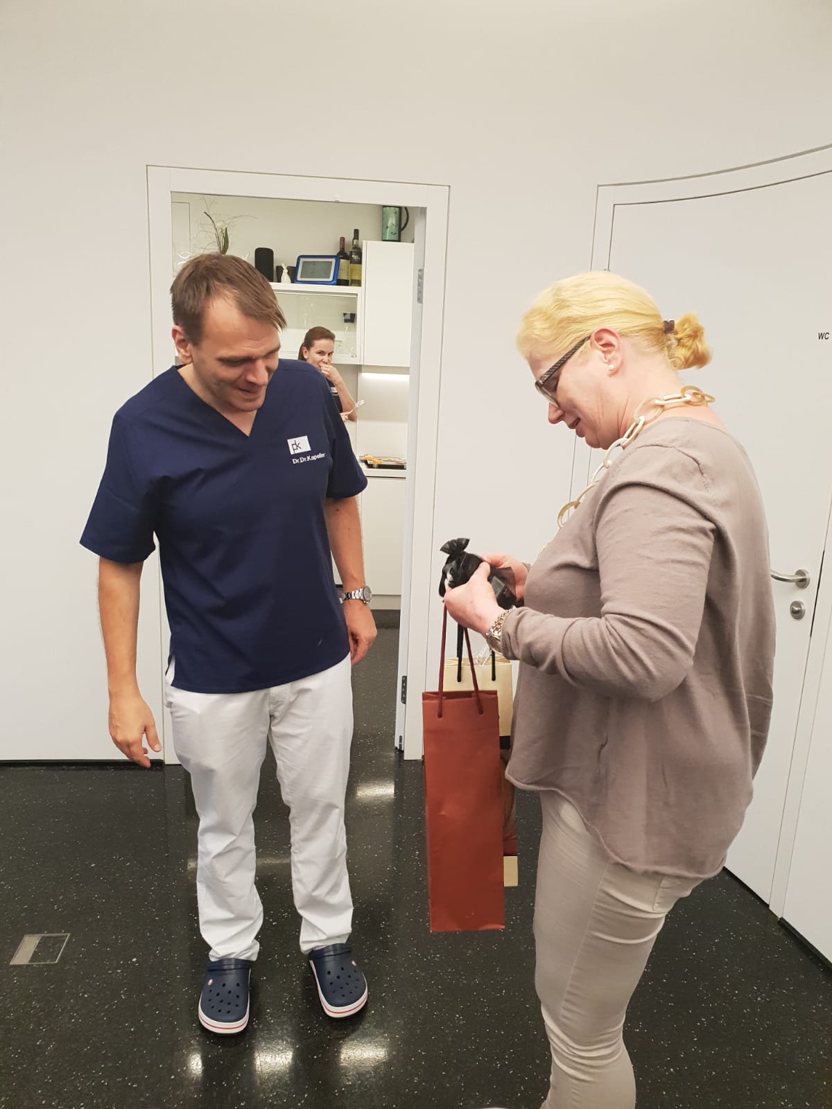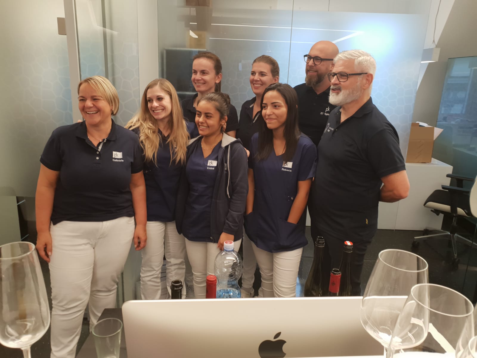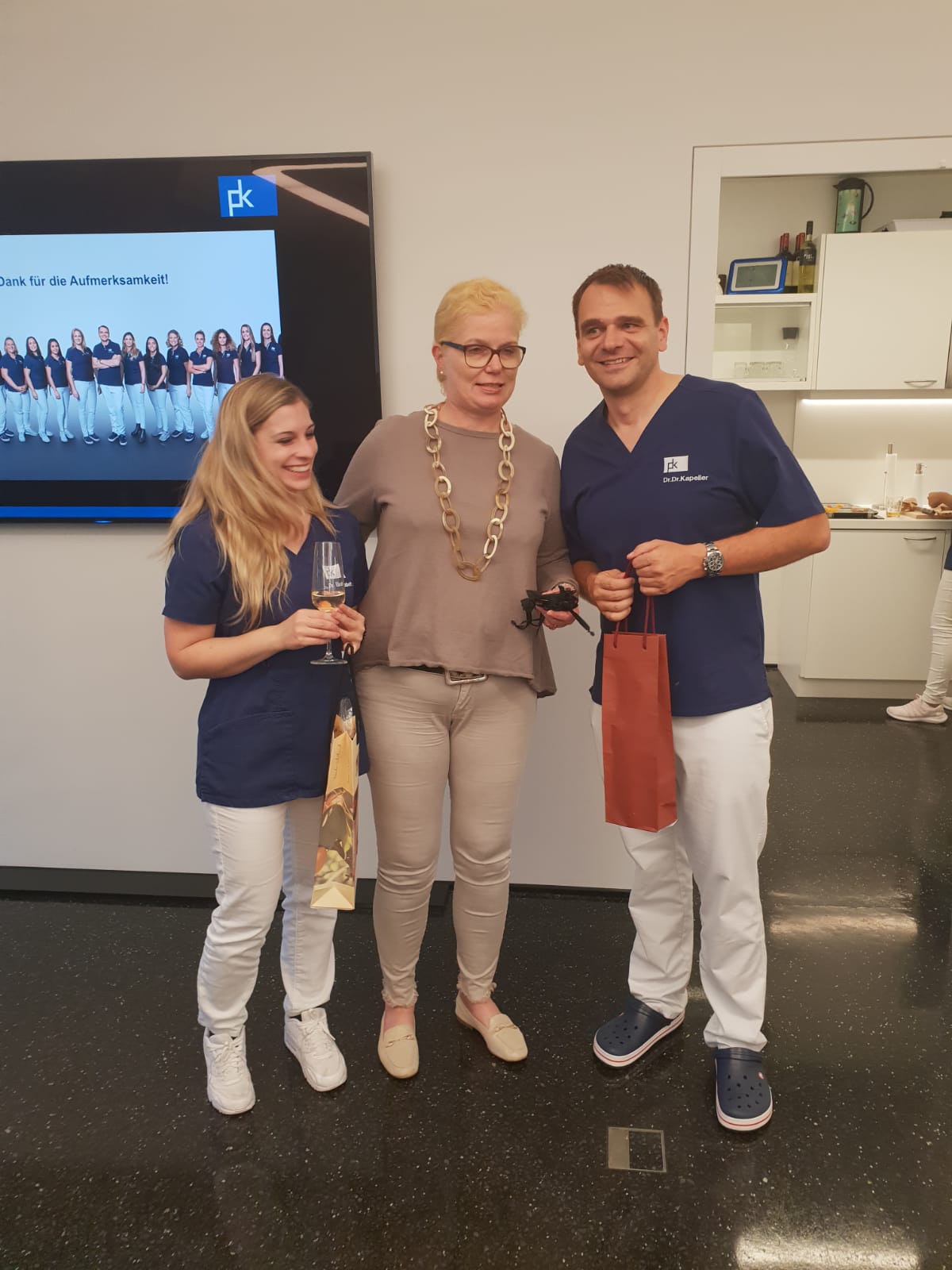 Das war ein angenehmer und lehrreicher Zahnarztbesuch! Gewinner der Tombola vom Gildenball 2019 der Bregenzer Faschingsgesellschaft (BFG) haben kürzlich, wie bereits in den vergangenen Jahren, ein lehrreiches Zahn- und Implantat-Seminar von Ehrensenatsrat DDR. Peter Kapeller in der Zahnarzt-Ordination "Implantart" erlebt. In einer informativen Präsentation erläuterte Dr. Kapeller den neuesten Stand moderner Prophylaxe, Zahnbehandlung und Möglichkeiten des Zahn-Ersatzes durch millionenfach bewährte Implantat-Technologie. Oberste Priorität sei es, jeden Zahn möglichst zu erhalten, betonte Kapeller. Wenn aber nichts mehr helfe, könne individuell geholfen werden.
