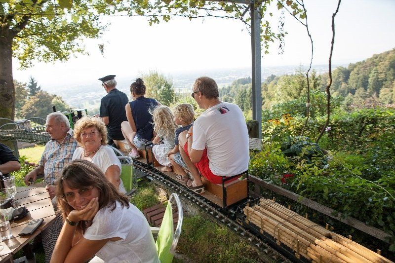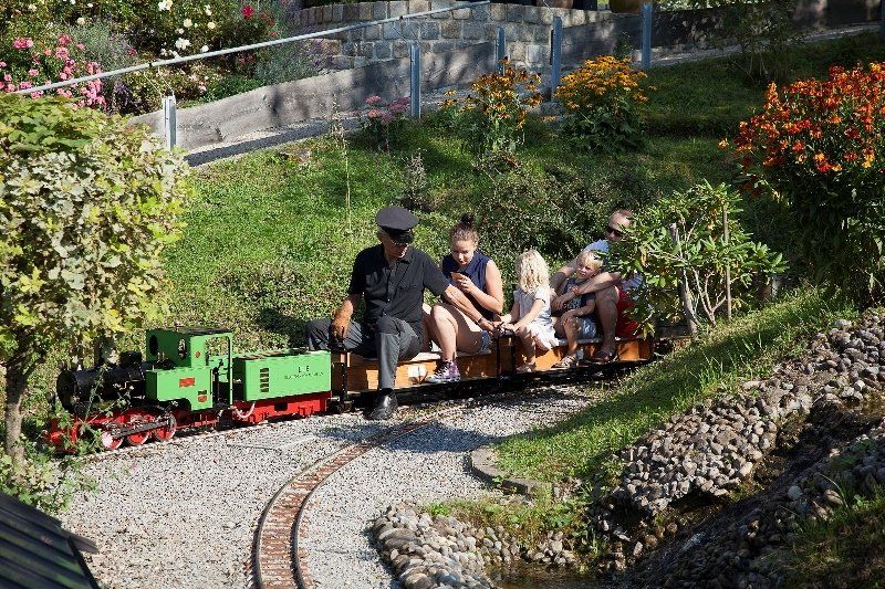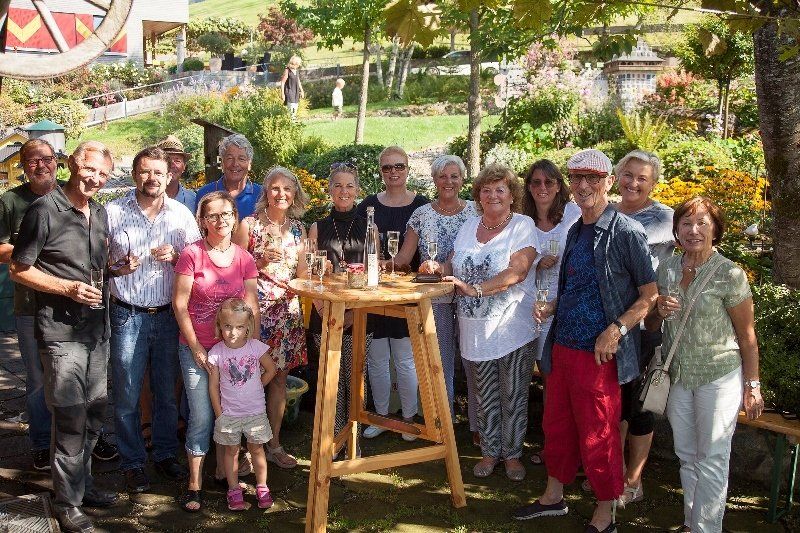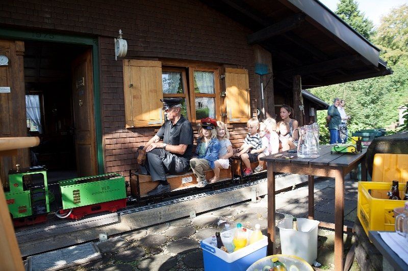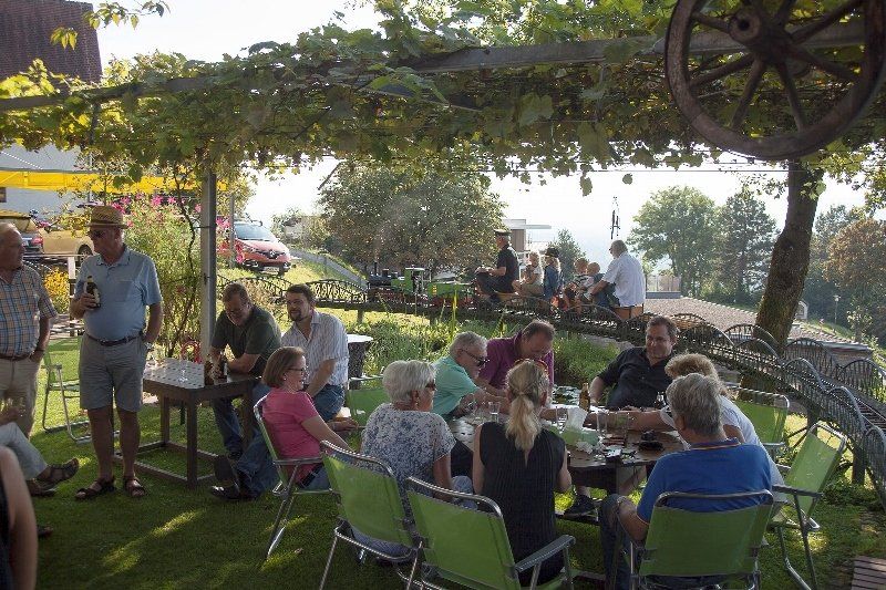Teil der Eisenbahn zu sein, diesen Traum Wirklichkeit werden lassen, das passt zu Jürgen Zimmermann, Ehrenpräsident der Bregenzer Faschingsgesellschaft (BFG). Mit den Bildsteiner Lokalbahnen (BLB) hat er seinen Bähnlepark in Bildstein realisiert. Große und auch die kleine Tombola-Gewinner vom Gildenball der BFG konnten heuer an diesen Traum teilhaben. Bei schönem Wetter und herrlichem Ausblick ins Rheintal genossen alle die Fahrt mit der Miniatur-Dampflok. Am Bahnwärterhüsle hieß es „Bitte einsteigen“, selbstverständlich nur mit gültiger Fahrkarte. Über den Viadukt beim Teich ging die Dampffahrt durch das Tobel hinauf in den Bildsteintunnel. Dort wurde von Lokführer Jürgen Zimmermann die Weiche für die Rundfahrt gestellt. Aus dem Tunnel, vorbei am Enkel-Schloss und der Remise ging es leicht abwärts wieder zum Bahnhof. Es war in Erlebnis für Jung und Alt – alle Teilnehmer waren fasziniert von den technischen Details, aber auch von der Gartenlandschaft. Nach Bähnle-Erlebnisstunden luden Hildegard und Jürgen Zimmermann zum gemütlichen Ausklang bei Speis, Trank und Tratsch. Mit einem kleinen Geschenk bedankten sich im Namen der BFG Mariette Eisendle und Renate Mitterhuber bei den "Zimmermännern" für den tollen Nachmittag!