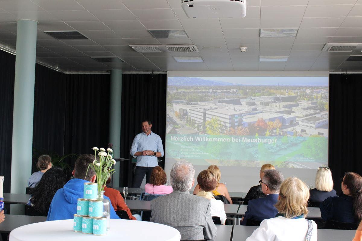 Roman Giesinger als Mitglied der Geschäftsleitung und Jürgen Winder, Geschäftsführer von Meusburger Immobilien führten die Gäste durch die riesigen Hallen, in denen Qualitätsstahl zu spannungsarm geglühten Platten in allen erforderlichen Größen und Stärken verarbeitet werden. Über 24000 Kunden in 81 Ländern schätzen Meusburger als zuverlässigen Partner im Werkzeug-, Formen- und Maschinenbau.