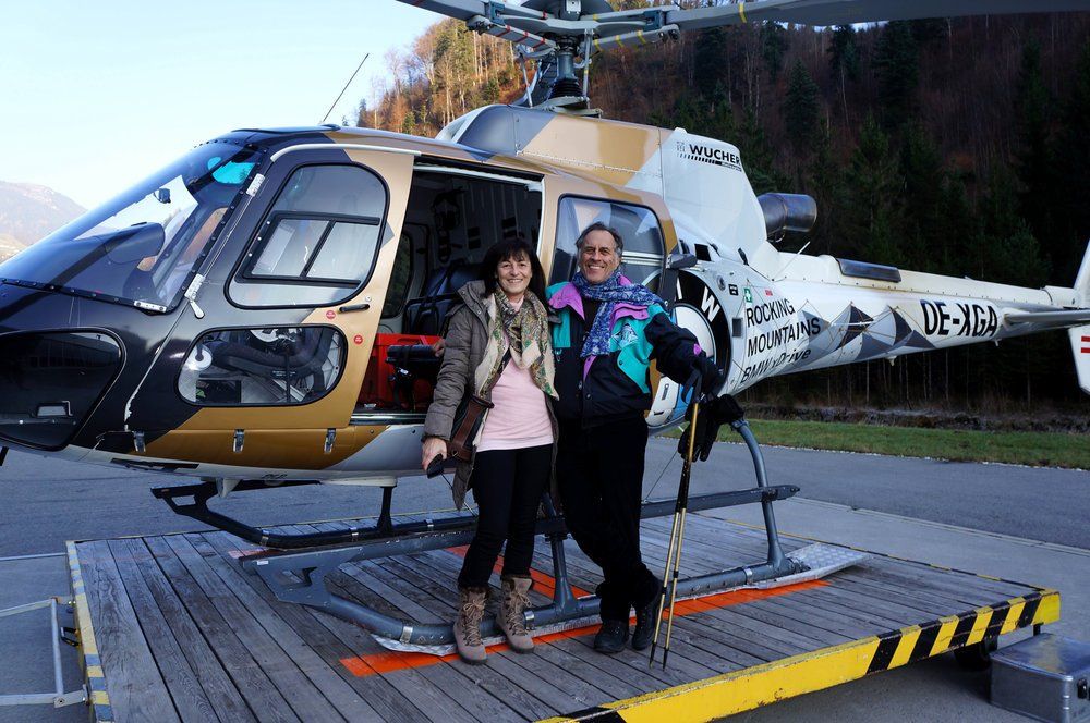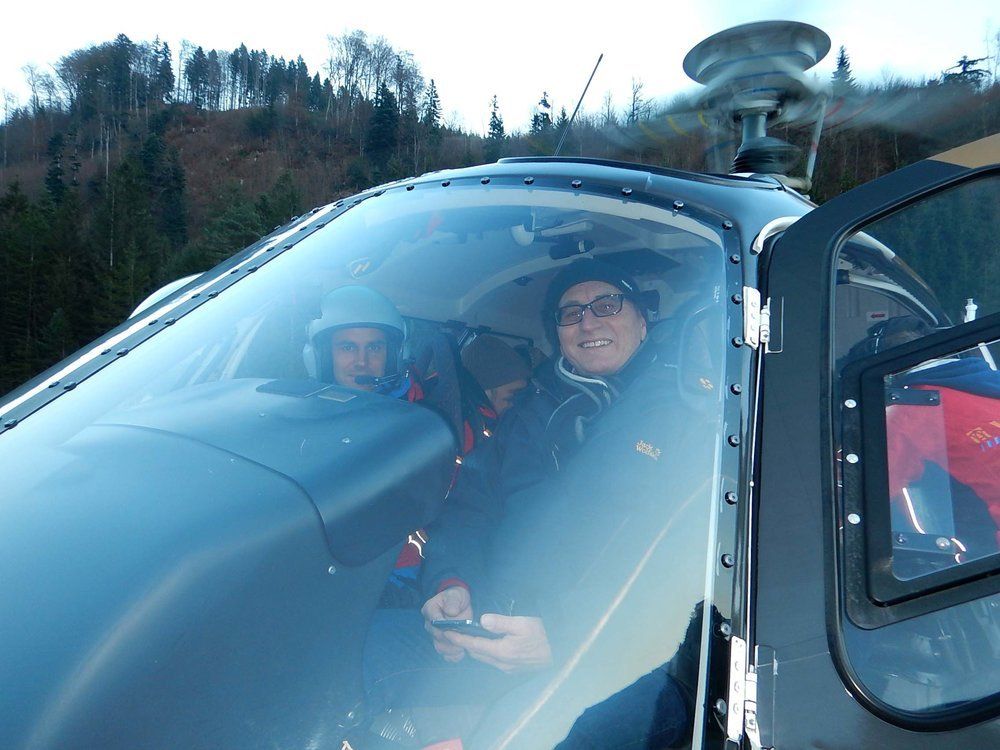 Die Chance, einmal im Libellenflug durch die Luft zu schweben, haben Unterstützer der Tombola beim Gildenball 2016 der Bregenzer Faschingsgesellschaft (BFG) erhalten. Diesen attraktiven Luftschwebe-Event hat BFG-Ehrensenatsrat Dipl.-Ing. Bernd Doppler gestiftet und Anfang Dezember eingelöst. Zwei Gewinner-Paare trafen beim Hangar der Firma Wucher Helicopter in Ludesch ein. Beim Probesitzen im Cockpit und mit Basisinformationen waren die Teilnehmer hautnah bei einer Ausbildungseinheit zum Lawinensprengtechniker dabei, ebenso bei der Vorbereitung der Sprengladungen. Die Gäste konnten die Handhabung verschiedener Lawinensprengstoffe verfolgen. Es wurden auch unterschiedliche Helikopter-Modelle präsentiert. Am späteren Nachmittag schloss eine Walgau-Flugrunde den Fachteil. Am Abend klang der luftige Event kulinarisch-gemütlich beim Italiener in Ludesch mit einem Dreigang-Menü aus.