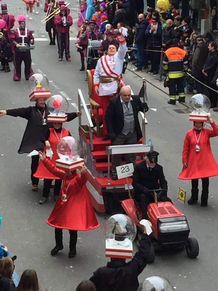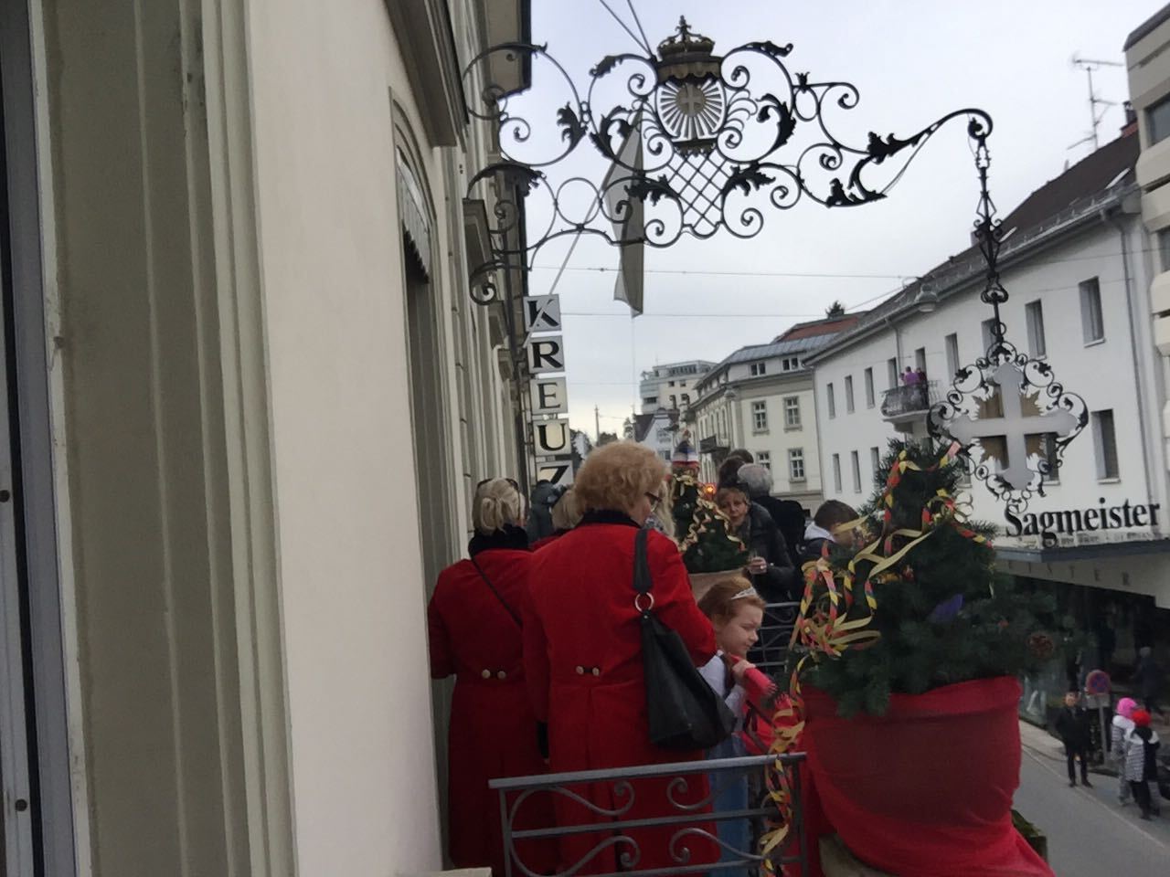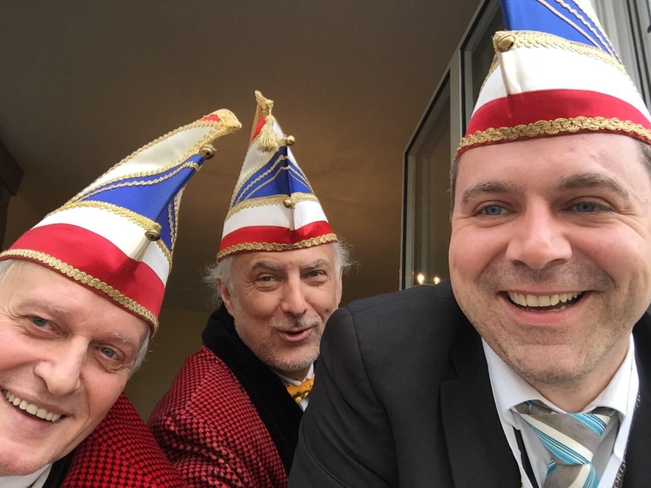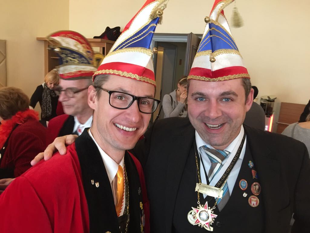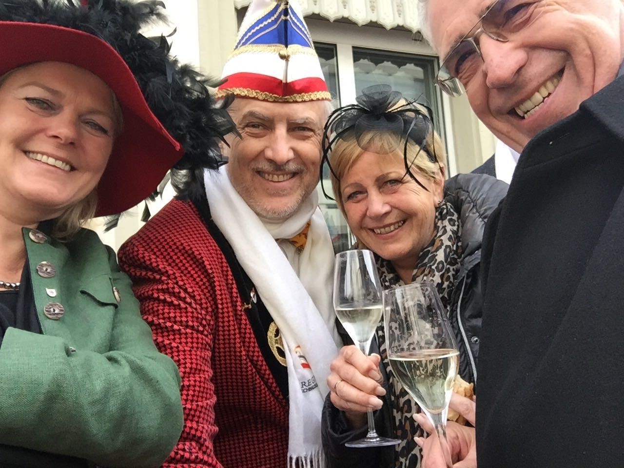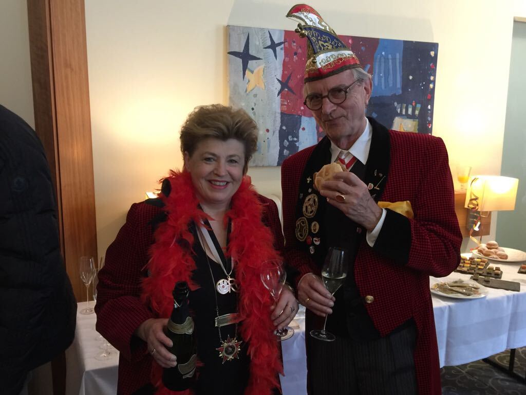 A propos: Dem Hofnarr klingt alte Sage in den Öhren, warum „Goldener Hirschen“ und „Weißes Kreuz“ zusammen g‘hören:Also vernehmet zum glücklichen Fastnacht-Endedie BFG-Version der St. Hubertus-Legende:Wir alle wissen längstens schon, St. Hubert gilt als Jagd-Patron,sein Attribut ein goldener Hirsch, im Geweih ein Kreuz – nicht von der Pirsch.Daher, so schließt der Hofnarr messerscharf, es auch bei Kinzens Hubert so sein darf .Uns als BFG und Freundesschar freut’s,dass wir als Gäste feiern im „Hirschen“ und „Weißen Kreuz“.Die Bregenzer Faschingsgesellschaft dankt mit Ore Ore hoch oben von der „Kreuz“-Empore- und fernerSchließt sich an der BFG Hofnarr WERNER(26. Februar 2017, Faschingssonntag)