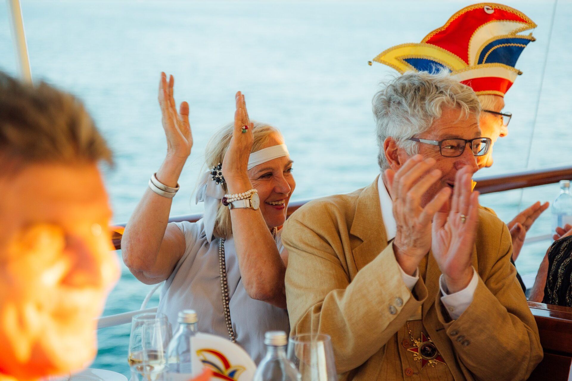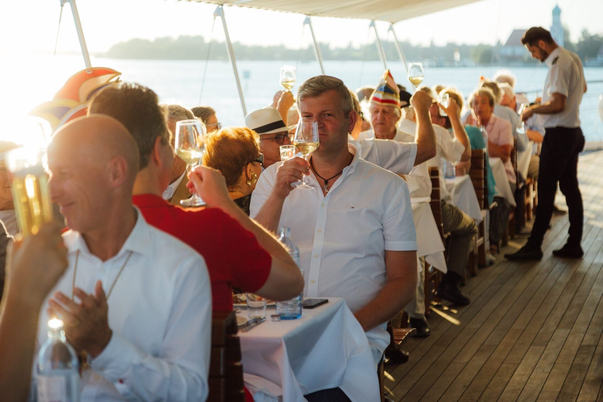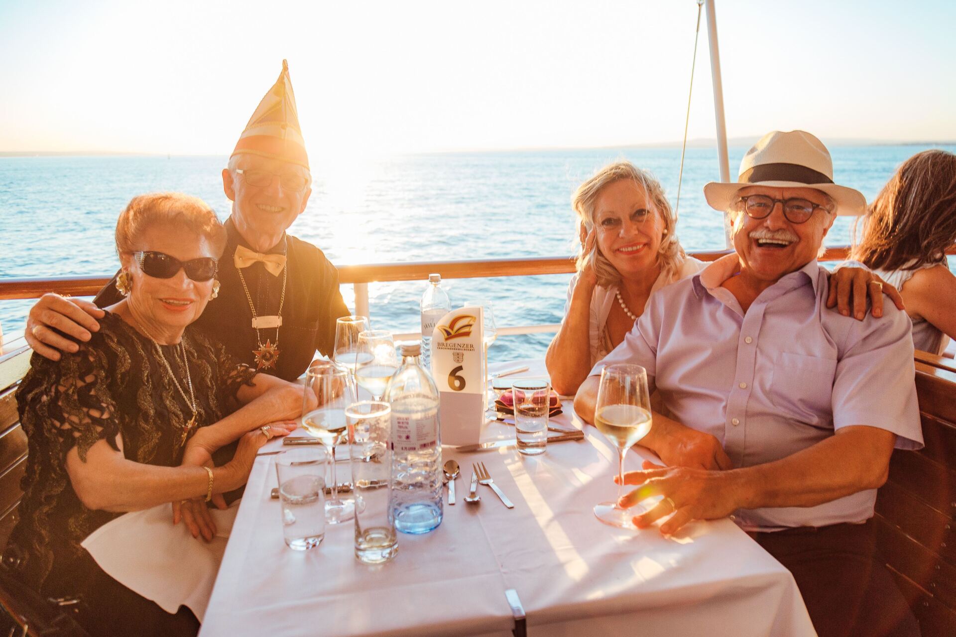 Am 29. Juni feierte die Bregenzer Faschingsgesellschaft mit einem eleganten Sommerfest auf der MS Österreich die erfolgreiche Organisation von 50 Gildenbällen. Geladen waren die Mitglieder des Vereines, die Ehrensenatsrätinnen und Ehrensenatsräte und enge Partner des Balles.